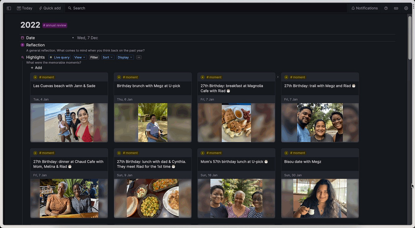 Welcome to another weekly reflection. I began this week thinking deeply about this year’s annual review. I knew that I wanted to discuss it for Workspace Wednesday and so I started off the week gathering memorable moments from 2022 by going through pictures on my phone and camera. The annual review is a useful tool that uses prompts and questions to help us reflect on the previous year.